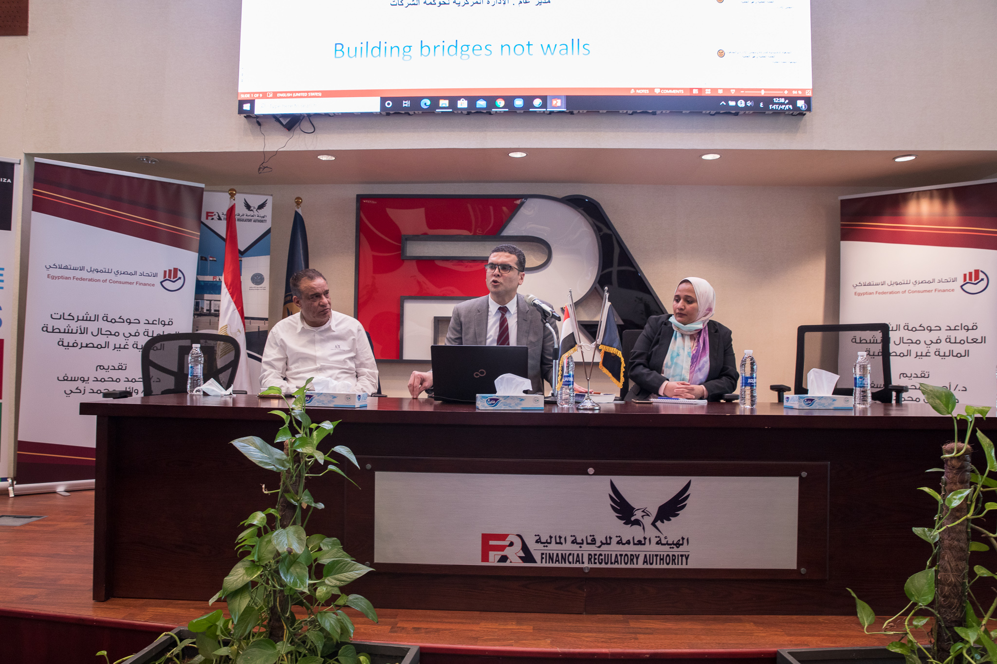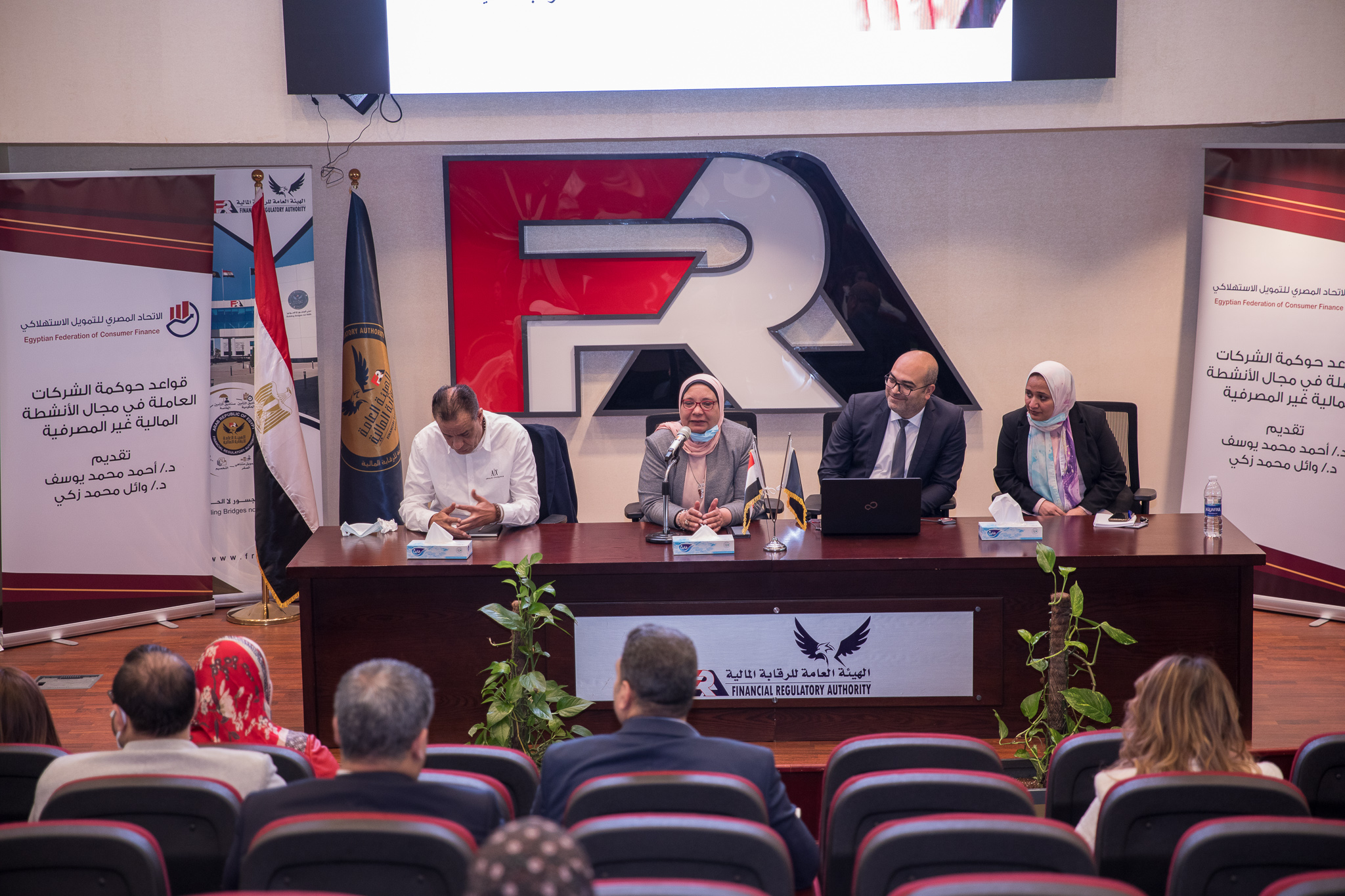 نظم الإتحاد المصري للتمويل الإستهلاكي برعاية الهيئة العامة للرقابة المالية ورشة عمل لمناقشة “قواعد حوكمة الشركات العاملة في مجال الأنشطة المالية غير المصرفية”، وجاء اللقاء بعد نجاح ورش العمل الأولى وبناء على طلب شركات التمويل الإستهلاكى وتعد ورشة العمل الثانية خلال شهر مارس.